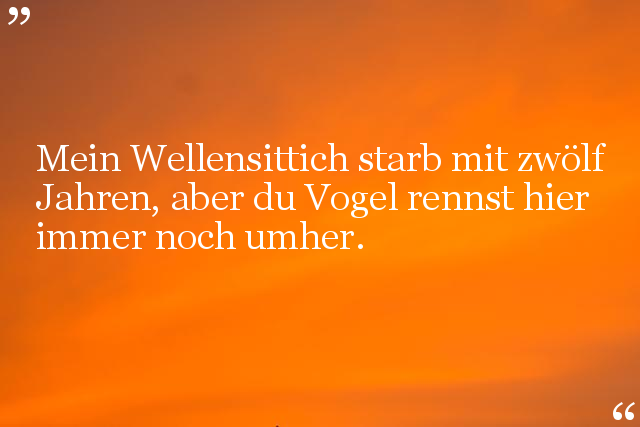 Mein Wellensittich starb mit zwölf Jahren, aber du Vogel rennst hier immer noch umher.