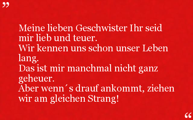 Meine lieben Geschwister Ihr seid mir lieb und teuer.