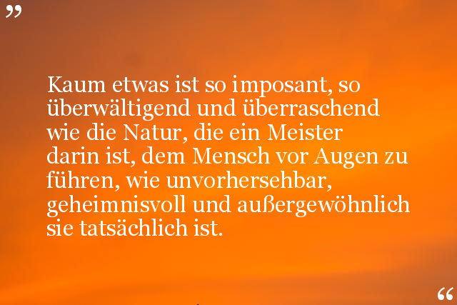 Kaum etwas ist so imposant, so überwältigend und überraschend wie die Natur, die ein Meister darin ist, dem Mensch vor Augen zu führen, wie unvorhersehbar, geheimnisvoll und außergewöhnlich sie tatsächlich ist.