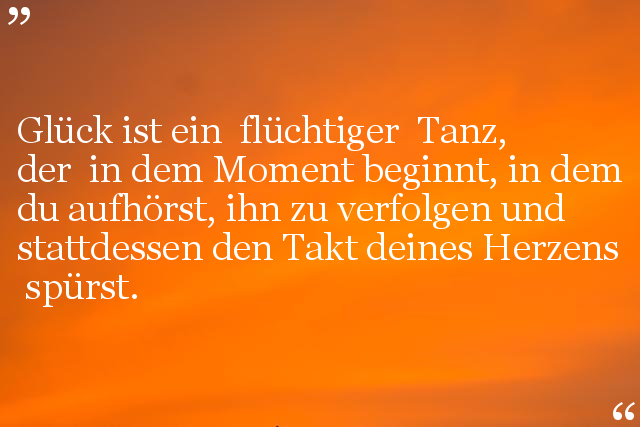 Glück ist ein flüchtiger Tanz, der in dem Moment beginnt, in dem du aufhörst, ihn zu verfolgen und stattdessen den Takt deines Herzens spürst.