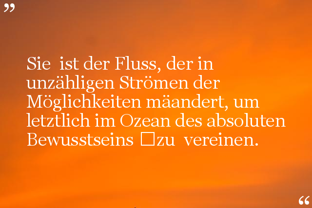 Sie ist der Fluss, der in unzähligen Strömen der Möglichkeiten mäandert, um letztlich im Ozean des absoluten Bewusstseins zu vereinen.