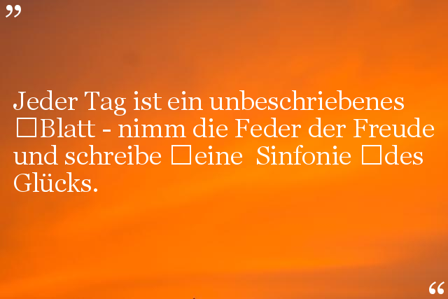Jeder Tag ist ein unbeschriebenes Blatt - nimm die Feder der Freude und schreibe eine Sinfonie des Glücks.