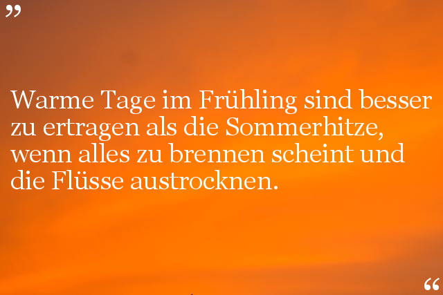 Warme Tage im Frühling sind besser zu ertragen als die Sommerhitze, wenn alles zu brennen scheint und die Flüsse austrocknen.