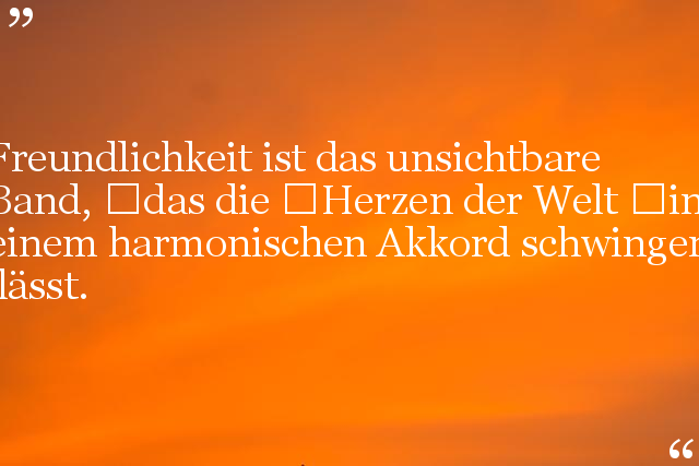 Freundlichkeit ist das unsichtbare Band, das die Herzen der Welt in einem harmonischen Akkord schwingen lässt.