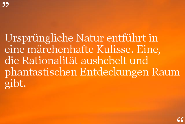 Ursprüngliche Natur entführt in eine märchenhafte Kulisse. Eine, die Rationalität aushebelt und phantastischen Entdeckungen Raum gibt.