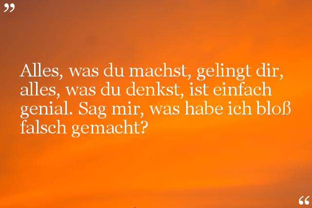 Alles, was du machst, gelingt dir, alles, was du denkst, ist einfach genial. Sag mir, was habe ich bloß falsch gemacht?