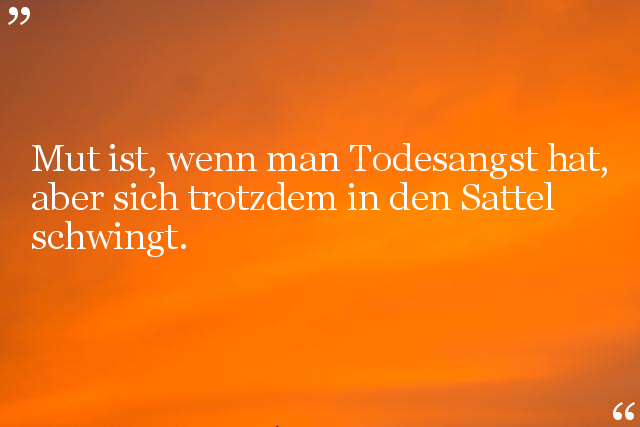 Mut ist, wenn man Todesangst hat, aber sich trotzdem in den Sattel schwingt.