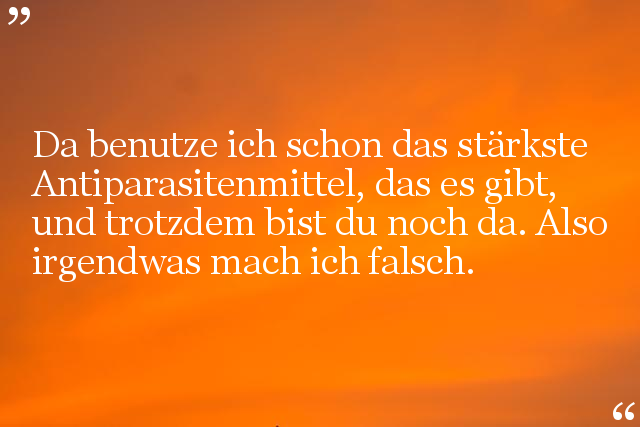 Da benutze ich schon das stärkste Antiparasitenmittel, das es gibt, und trotzdem bist du noch da. Also irgendwas mach ich falsch.