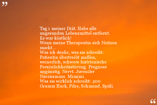 Was ich denke, was sie schreibt: Patientin übertreibt maßlos, weinerlich, schwere histrionische Persönlichkeitsstörung. Prognose ungünstig. Nervt. Juveniler Narzissmuss. Mimimi.
