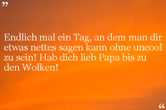 Endlich mal ein Tag, an dem man dir etwas nettes sagen kann ohne uncool zu sein! Hab dich lieb Papa bis zu den Wolken!
