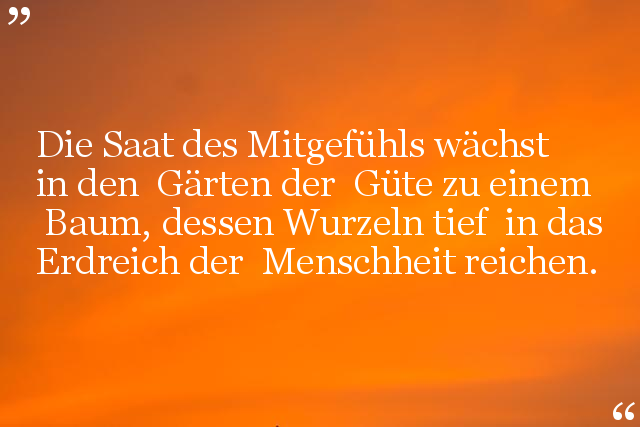 Die Saat des Mitgefühls wächst in den Gärten der Güte zu einem Baum, dessen Wurzeln tief in das Erdreich der Menschheit reichen.