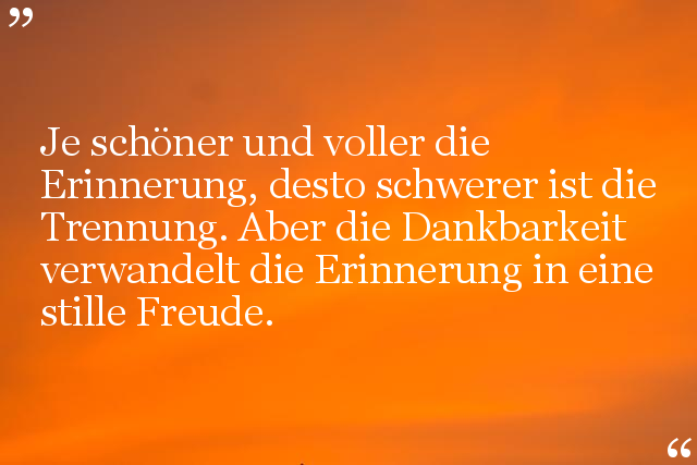 Je schöner und voller die Erinnerung, desto schwerer ist die Trennung. Aber die Dankbarkeit verwandelt die Erinnerung in eine stille Freude.