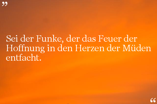 Sei der Funke, der das Feuer der Hoffnung in den Herzen der Müden entfacht.