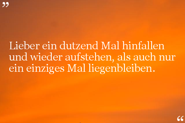 Lieber ein dutzend Mal hinfallen und wieder aufstehen, als auch nur ein einziges Mal liegenbleiben.