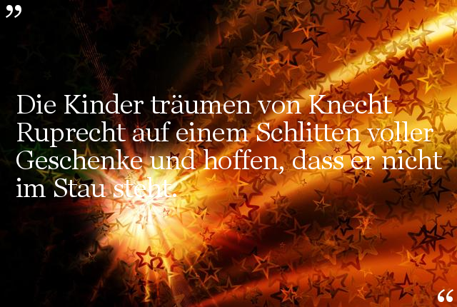Die Kinder träumen von Knecht Ruprecht auf einem Schlitten voller Geschenke und hoffen, dass er nicht im Stau steht.