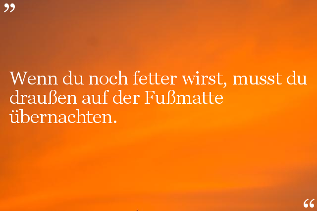 Wenn du noch fetter wirst, musst du draußen auf der Fußmatte übernachten.