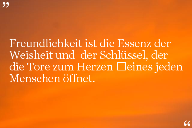 Freundlichkeit ist die Essenz der Weisheit und der Schlüssel, der die Tore zum Herzen eines jeden Menschen öffnet.