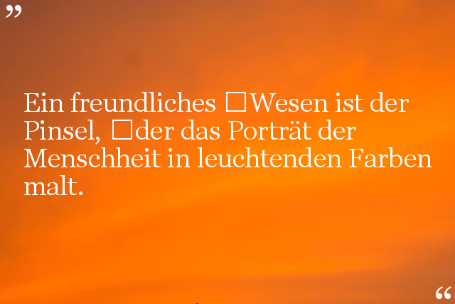Ein freundliches Wesen ist der Pinsel, der das Porträt der Menschheit in leuchtenden Farben malt.