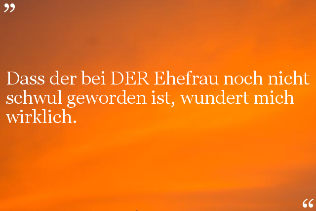 Dass der bei DER Ehefrau noch nicht schwul geworden ist, wundert mich wirklich.