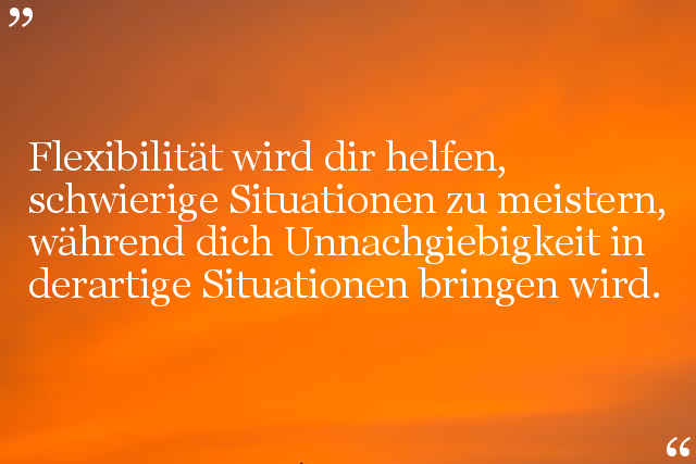 Flexibilität wird dir helfen, schwierige Situationen zu meistern, während dich Unnachgiebigkeit in derartige Situationen bringen wird.