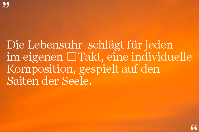 Die Lebensuhr schlägt für jeden im eigenen Takt, eine individuelle Komposition, gespielt auf den Saiten der Seele.