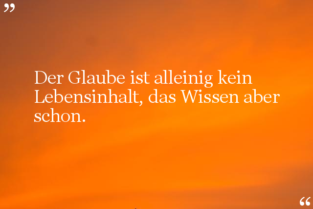 Der Glaube ist alleinig kein Lebensinhalt, das Wissen aber schon.