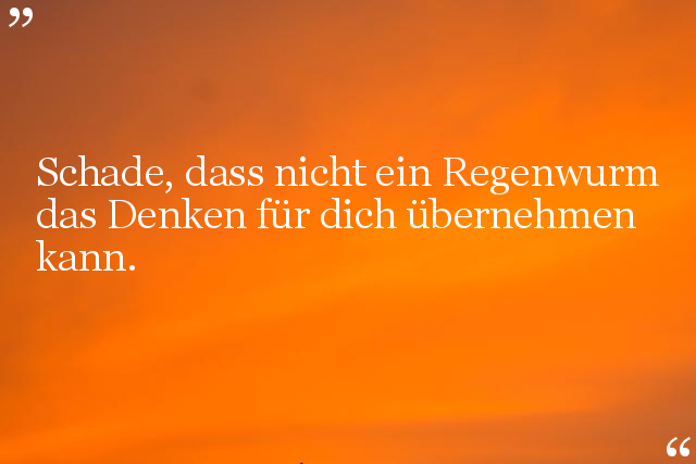Schade, dass nicht ein Regenwurm das Denken für dich übernehmen kann.
