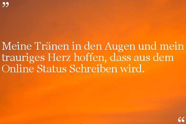 Meine Tränen in den Augen und mein trauriges Herz hoffen, dass aus dem Online Status Schreiben wird.