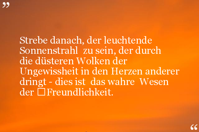 Strebe danach, der leuchtende Sonnenstrahl zu sein, der durch die düsteren Wolken der Ungewissheit in den Herzen anderer dringt - dies ist das wahre Wesen der Freundlichkeit.