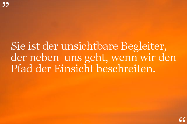 Sie ist der unsichtbare Begleiter, der neben uns geht, wenn wir den Pfad der Einsicht beschreiten.