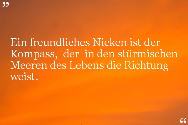 Ein freundliches Nicken ist der Kompass, der in den stürmischen Meeren des Lebens die Richtung weist.