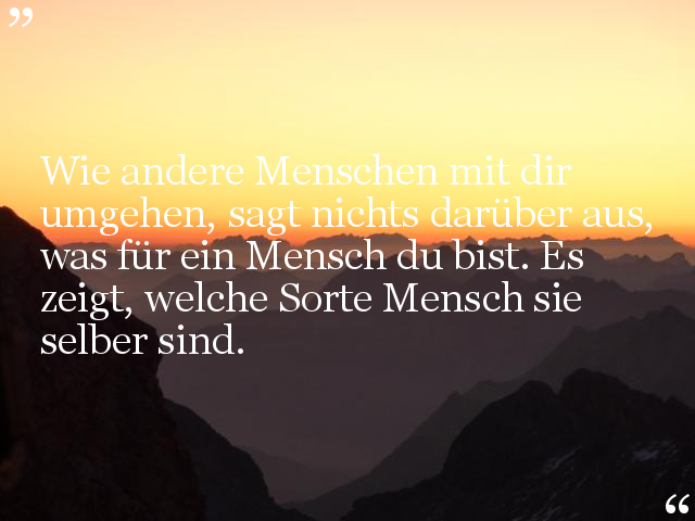 Wie andere Menschen mit dir umgehen, sagt nichts darüber aus, was für ein Mensch du bist. Es zeigt, welche Sorte Mensch sie selber sind.