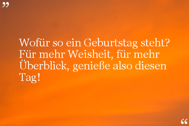 Wofür so ein Geburtstag steht? Für mehr Weisheit, für mehr Überblick, genieße also diesen Tag!