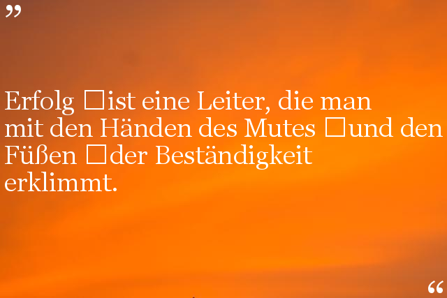 Erfolg ist eine Leiter, die man mit den Händen des Mutes und den Füßen der Beständigkeit erklimmt.