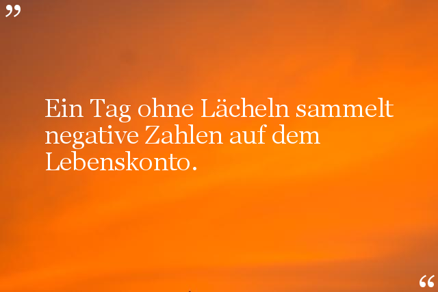 Ein Tag ohne Lächeln sammelt negative Zahlen auf dem Lebenskonto.