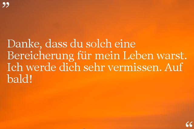 Danke, dass du solch eine Bereicherung für mein Leben warst. Ich werde dich sehr vermissen. Auf bald!