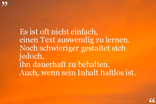 Man möge meinen, der Tag sei schön, doch ein Vogel meine, er müsse auf meinem Kopf seinen Darm entleeren. Welch ein schöner Tag!