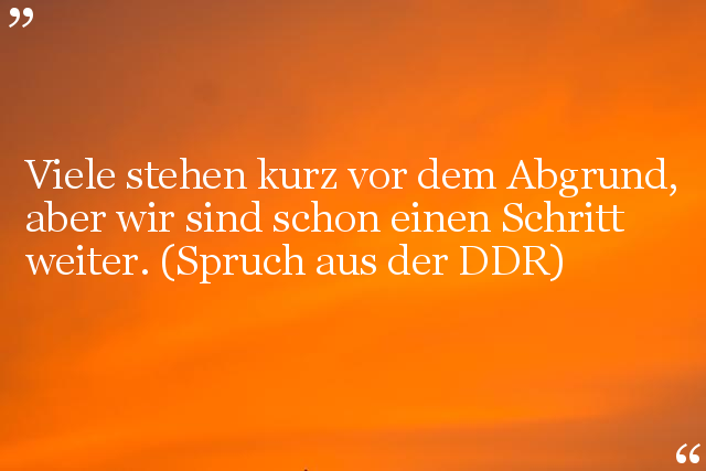Viele stehen kurz vor dem Abgrund, aber wir sind schon einen Schritt weiter. (Spruch aus der DDR)