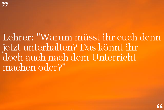 Lehrer: "Warum müsst ihr euch denn jetzt unterhalten? Das könnt ihr doch auch nach dem Unterricht machen oder?"