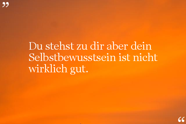 Du stehst zu dir aber dein Selbstbewusstsein ist nicht wirklich gut.