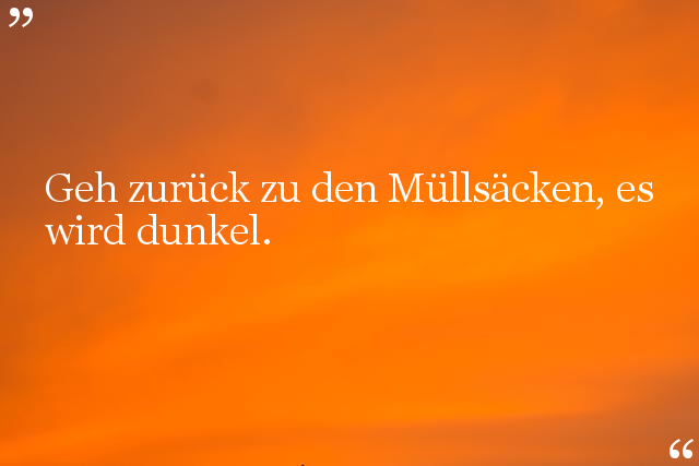 Geh zurück zu den Müllsäcken, es wird dunkel.
