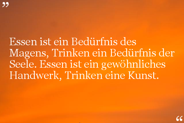 Essen ist ein Bedürfnis des Magens, Trinken ein Bedürfnis der Seele. Essen ist ein gewöhnliches Handwerk, Trinken eine Kunst.