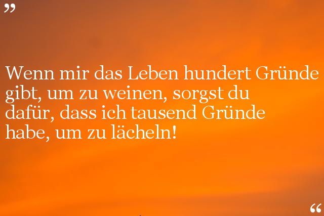Wenn mir das Leben hundert Gründe gibt, um zu weinen, sorgst du dafür, dass ich tausend Gründe habe, um zu lächeln!