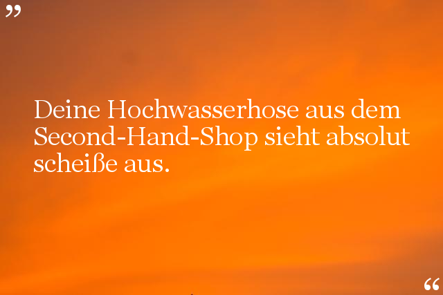 Deine Hochwasserhose aus dem Second-Hand-Shop sieht absolut scheiße aus.