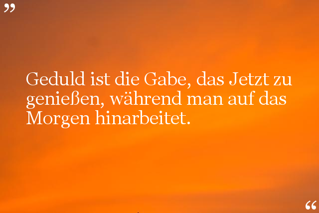 Geduld ist die Gabe, das Jetzt zu genießen, während man auf das Morgen hinarbeitet.