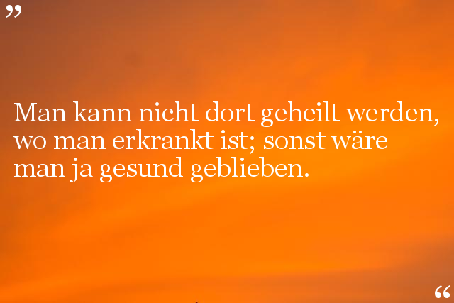 Man kann nicht dort geheilt werden, wo man erkrankt ist; sonst wäre man ja gesund geblieben.