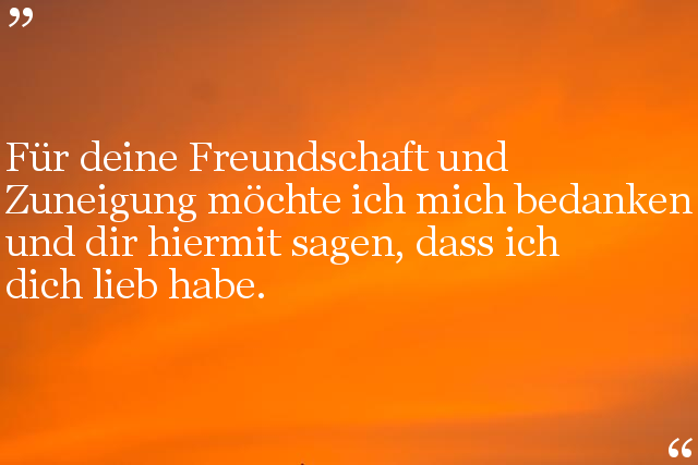 Für deine Freundschaft und Zuneigung möchte ich mich bedanken und dir hiermit sagen, dass ich dich lieb habe.