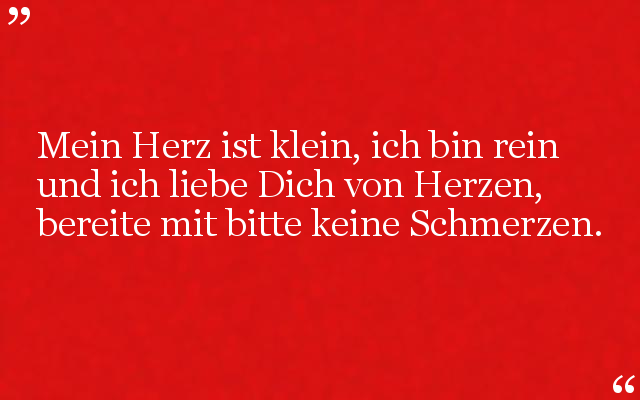 Mein Herz ist klein, ich bin rein und ich liebe Dich von Herzen, bereite mit bitte keine Schmerzen.