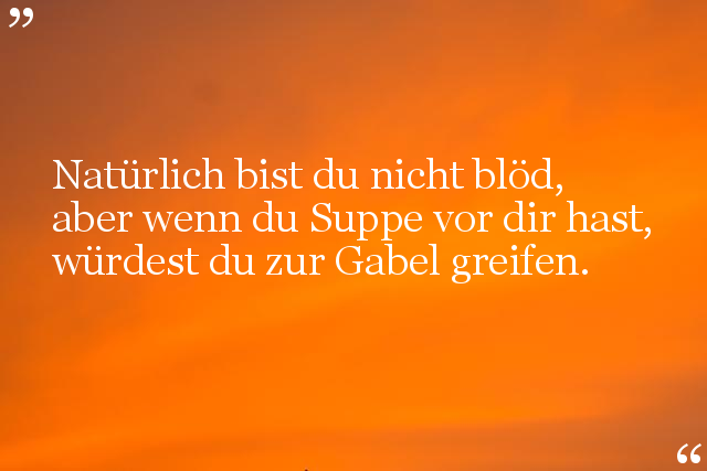 Natürlich bist du nicht blöd, aber wenn du Suppe vor dir hast, würdest du zur Gabel greifen.