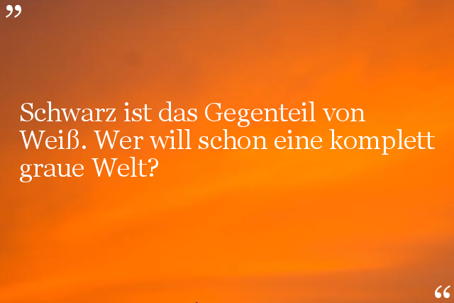 Schwarz ist das Gegenteil von Weiß. Wer will schon eine komplett graue Welt?